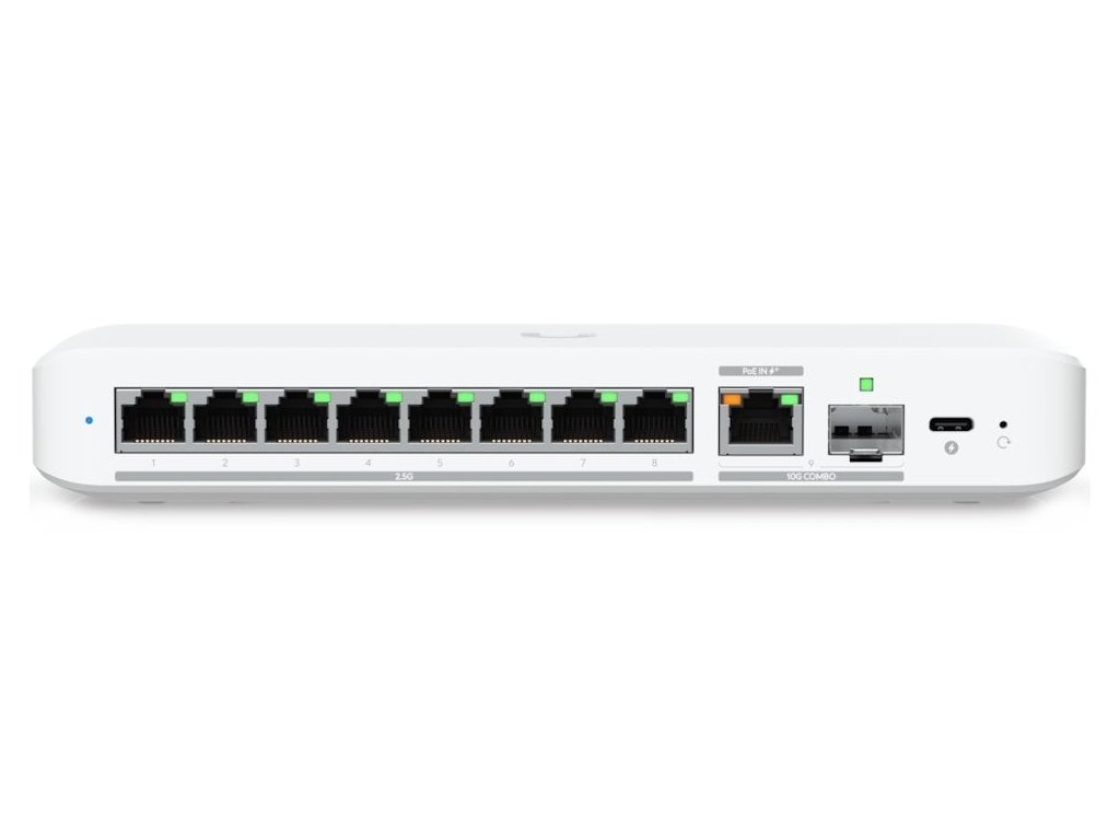 Porty: 8× 2,5 GbE RJ-45, 1× 10G combo RJ-45 PoE+/SFP+, 1× USB-C (napájení)