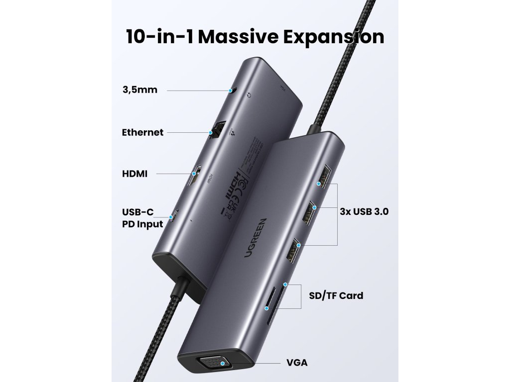 UGREEN 15601 USB-C Multifunkční adaptér je nepostradatelným nástrojem pro každého, kdo potřebuje spolehlivé a rychlé připojení. Ať už pracujete z domova, v kanceláři nebo na cestách, tento adaptér vám poskytne vše, co potřebujete. Nečekejte a objednejte si svůj ještě dnes!