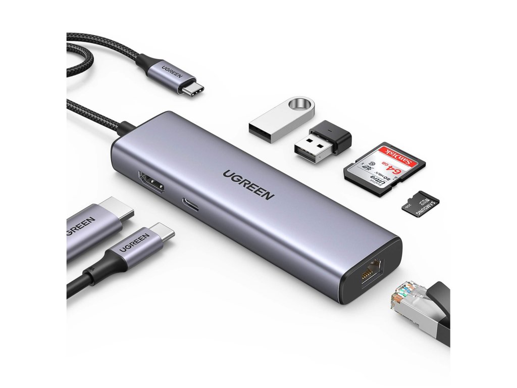 UGREEN 90568 USB-C/2*USB3.0+HDMI+RJ45+SD&TF +PD port konvertor