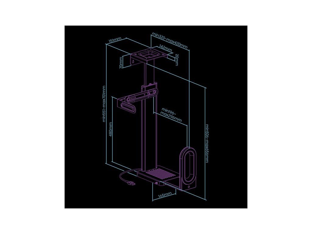 Držák pro PC pod stůl, nastavitelné rozměry (délka 40-52 cm a šířka 19,6-29,6 cm), RGB podsvícení