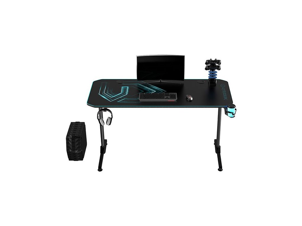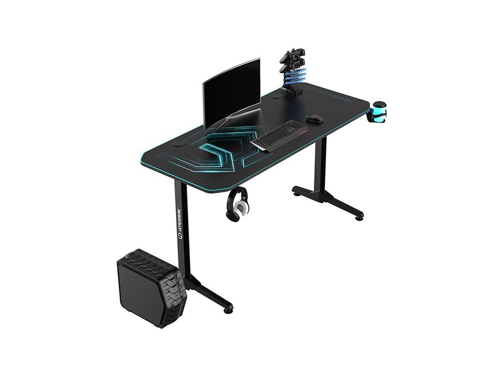 Herní stůl, rozměry 140x60 cm, výška 76 cm, XXL podložka pod myš, se stojanem Ultradesk Beam, držák sluchátek i nápojů, modrý
