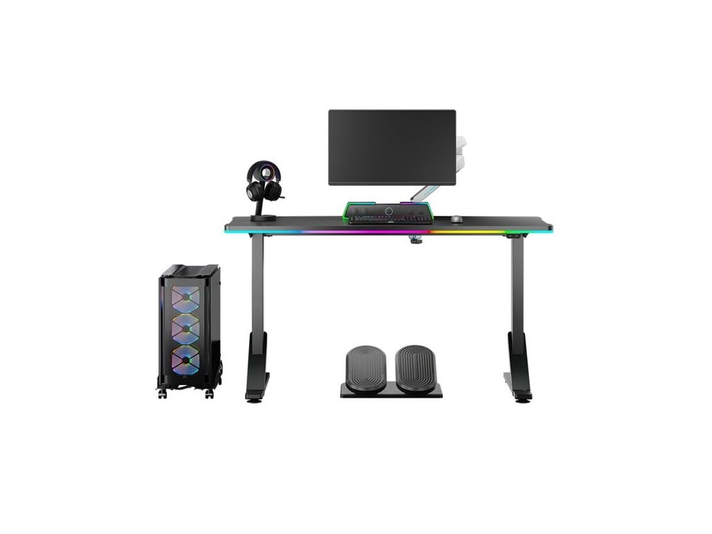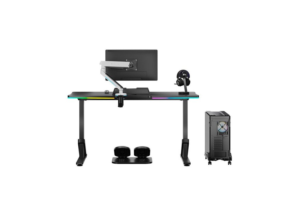 Herní stůl, rozměry 132,5x60,5 cm, mechanicky nastavitelná výška 71-81 cm, RGB podsvícení, černý