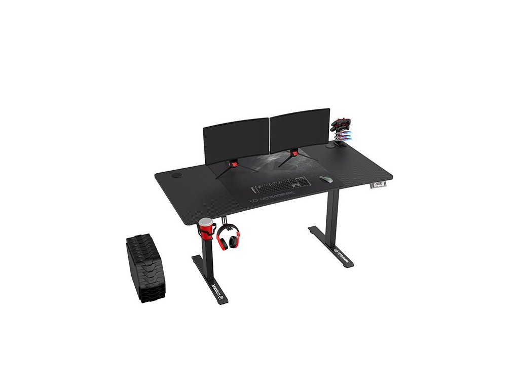 Herní stůl, rozměry 140x68 cm, elektricky nastavitelná výška 72-117 cm, XXL podložka pod myš, se stojanem Ultradesk Beam, držák sluchátek i nápojů, černý