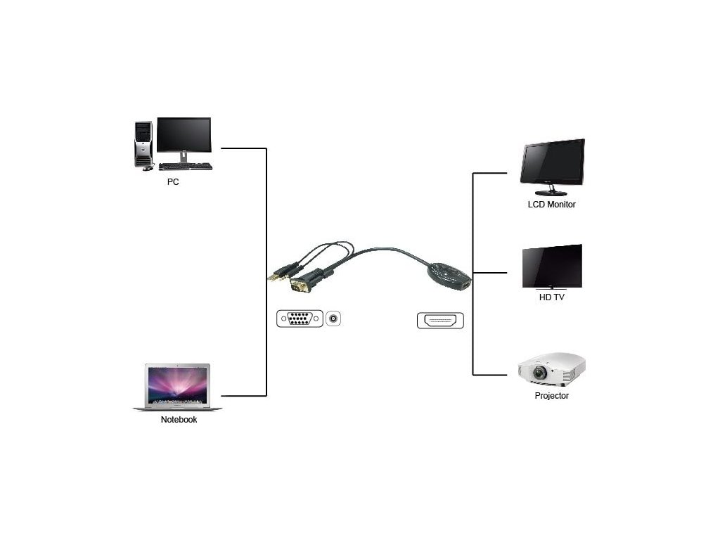 adaptér VGA s audio na HDMI, vhodný pro PC a laptopy s VGA výstupem