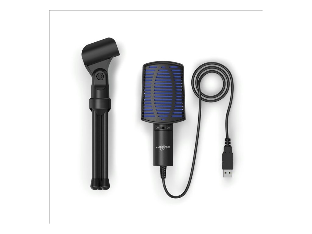 uRage Stream 100, mikrofon vhodný pro podcasty, voiceovery, vlogy, nahrávání hudby nebo streamování na Twitch, YouTube a na Facebooku, délka kabelu: 2 m, USB