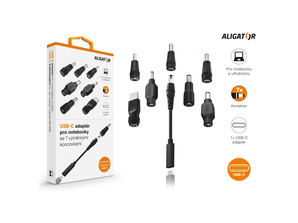 Miniaturní USB-C adaptér se 7 výměnnými konektory řady ALIGATOR POWER.