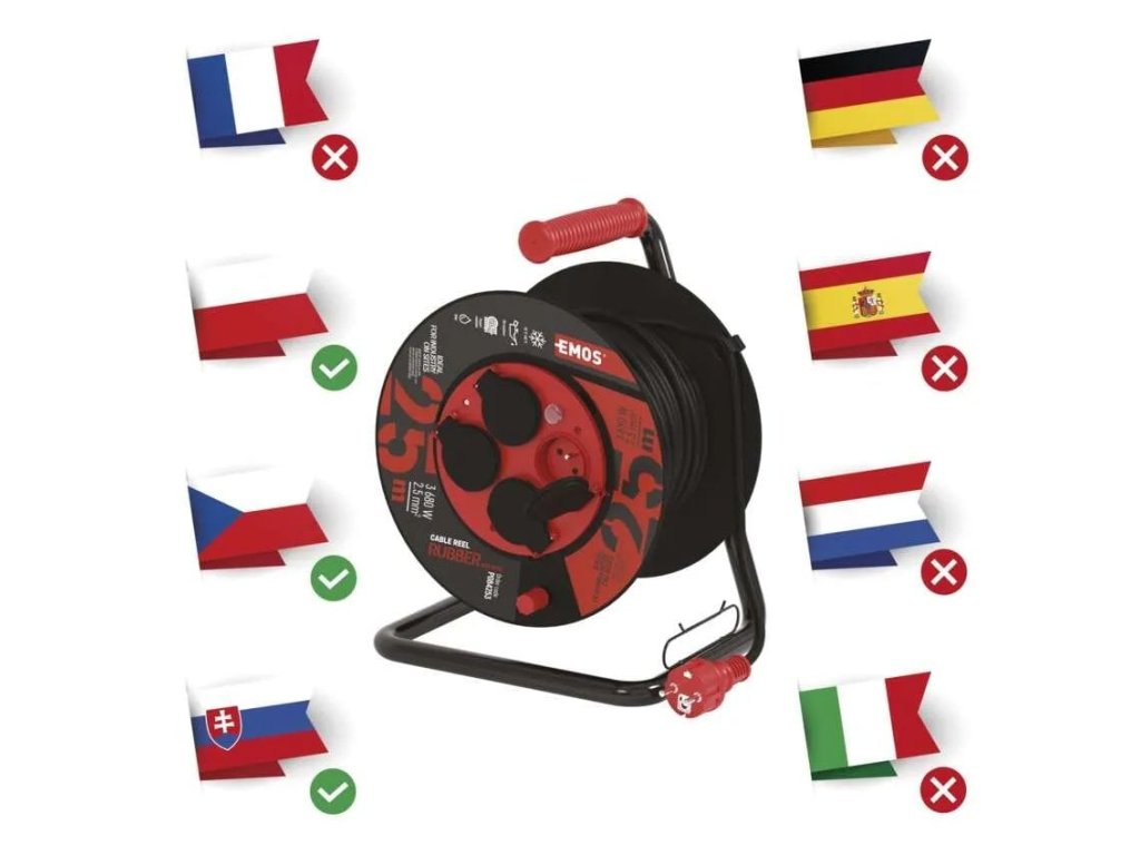 Kvalitní gumový naviják prodlužovacího přívodu. Je ideální pro prodloužení napájecí sítě 230V~. Jeho výhodou je pohodlná manipulace díky bubnu.