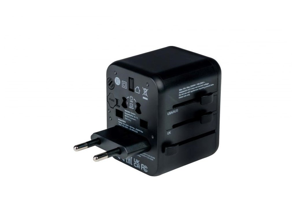 Univerzální cestovní adaptér od společnosti Verbatim lze používat ve více než 180 zemích – ať už se vydáte kamkoli, vaše zařízení nikdy nezůstanou bez energie. S tímto univerzálním adaptérem s více zástrčkami se připojíte k jakémukoli místnímu elektrickému zdroji. Svá elektronická zařízení náročná na energii, například notebooky a akumulátory do fotoaparátů, tak dobijete kdekoli na světě. Porty USB-C a USB-A na spodní straně pohodlně nabijete všechna svá zařízení USB včetně chytrých telefonů, Bluetooth reproduktorů, tabletů, powerbank a čteček Kindle.