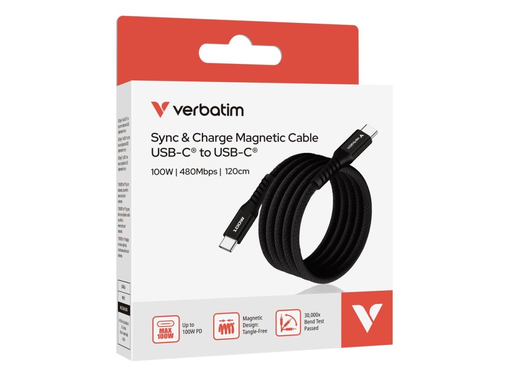 Verbatim USB-C->C magnetický kabel Sync & Charge 100W černý