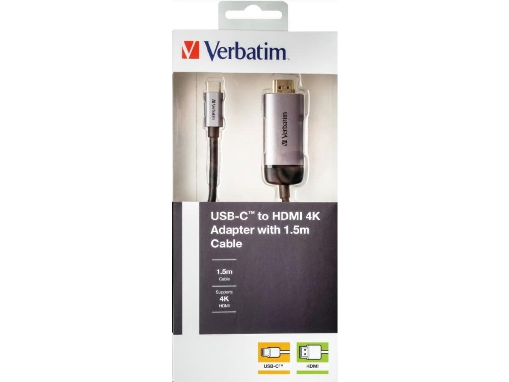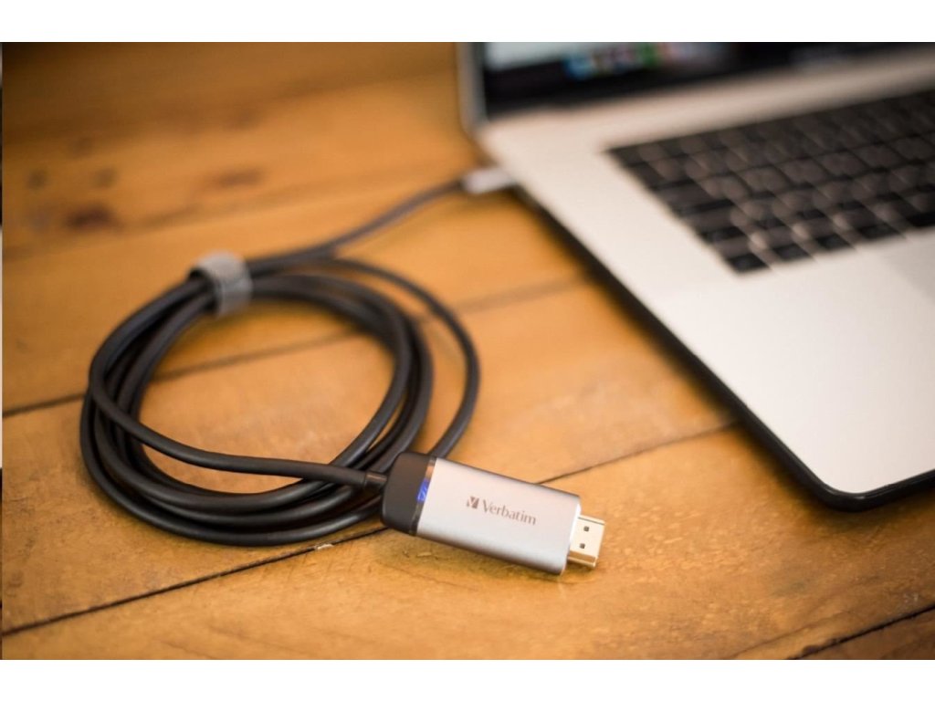 Adaptér Verbatim USB-C® to HDMI 4K umožňuje připojení chytrých telefonů, notebooků a MacBooků podporujících standard USB-C nebo Thunderbolt 3 (USB-C) k projektoru, HDTV nebo monitoru, který podporuje HDMI. Jedná se o ideálního společníka pro nejnovější tenké notebooky a MacBooky, které mají málo portů. Není nutné po pořízení nového notebooku vyměňovat celou hardwarovou výbavu. Stačí připojit adaptér k portu USB-C na notebooku a poté se kabelem HDMI připojit k obrazovce.