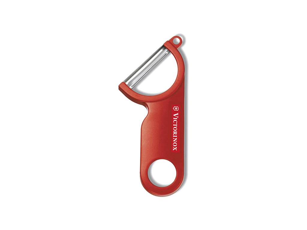 Stylová červená škrabka na brambory značky VICTORINOX. S tímto pomocníkem nejen dokonale oškrábete brambory k obědu, ale stane se také šperkem vaší kuchyně. Přesnou a pohodlnou manipulaci zaručuje plastová rukojeť a inteligentní sklon čepele.
