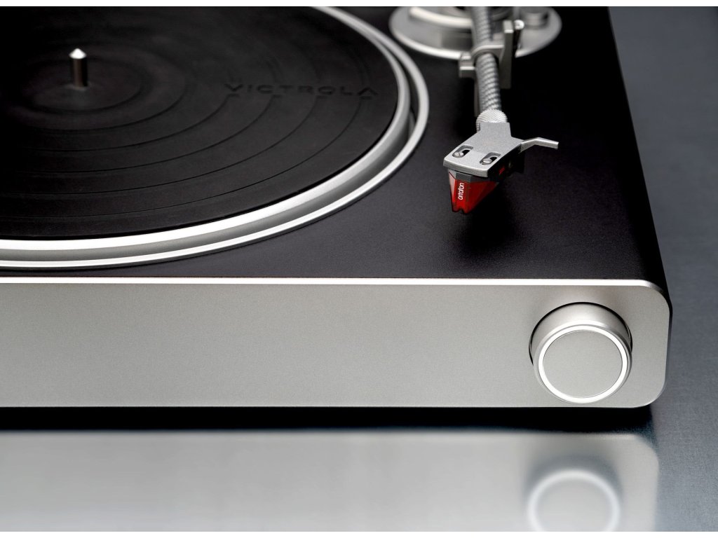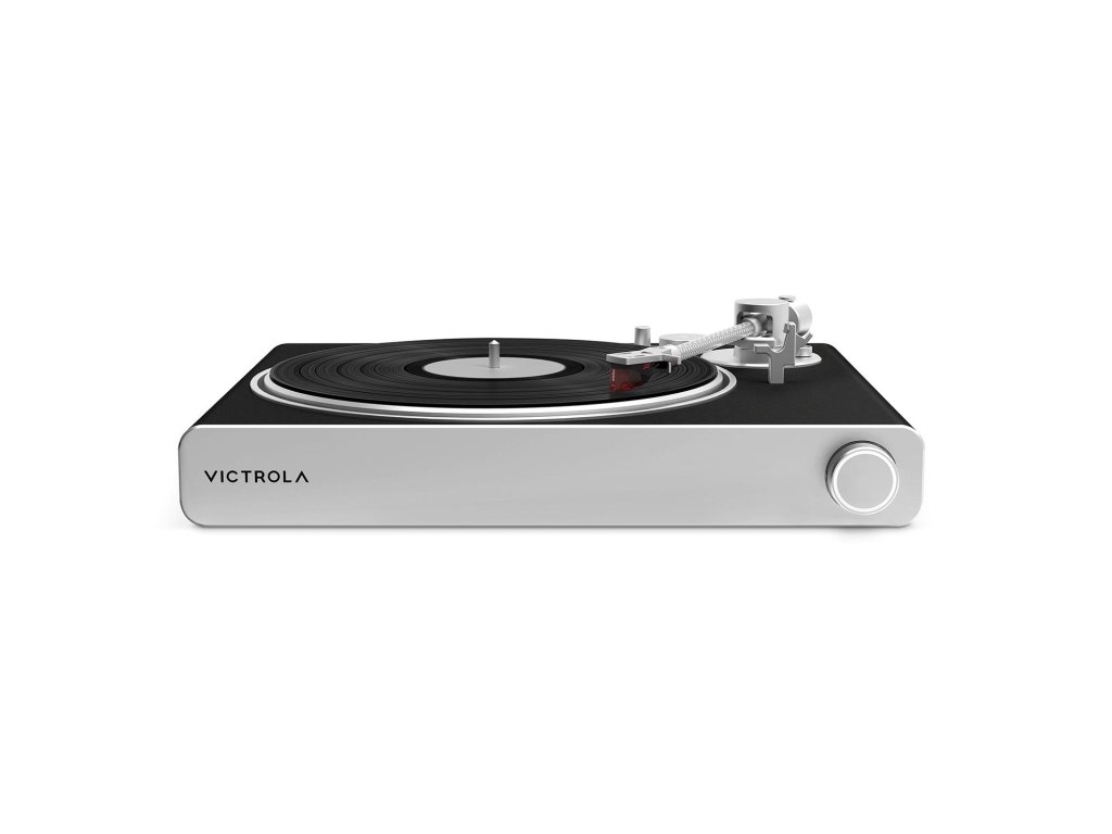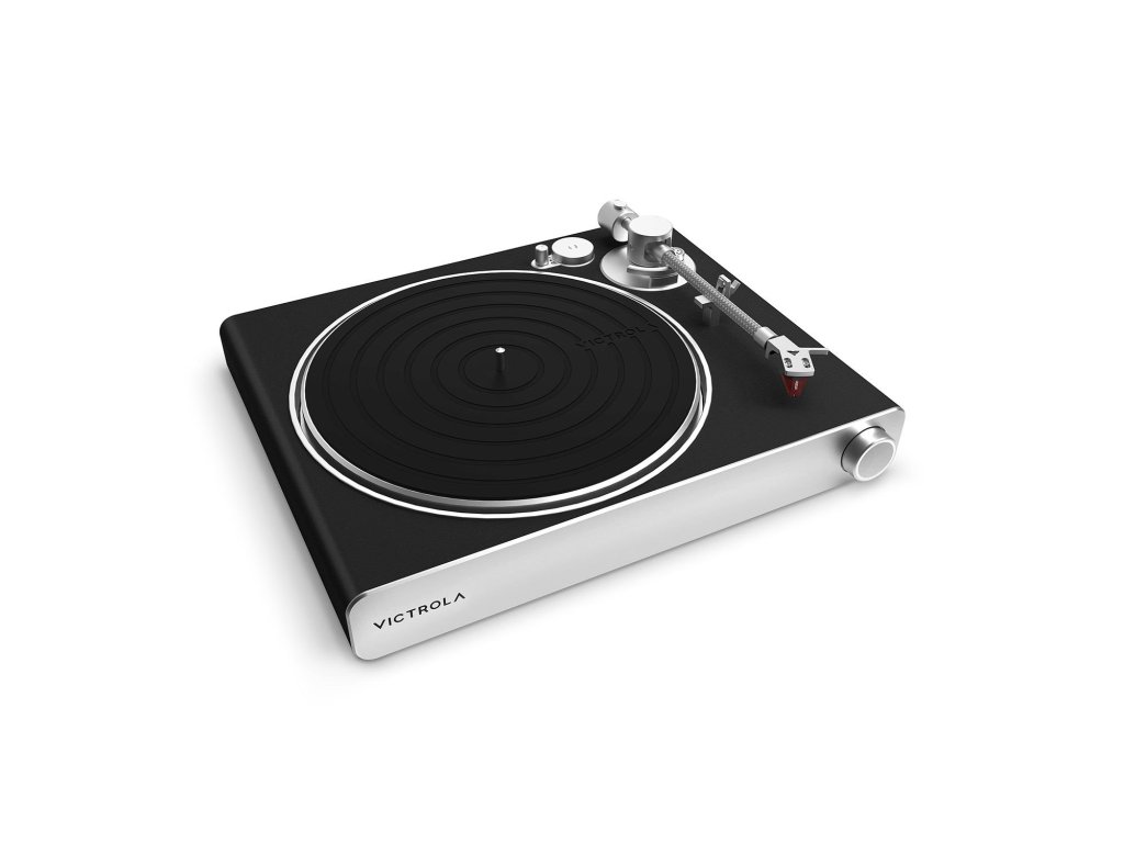•2rychlostní, řemenem poháněný gramofon se silikonovou podložkou Victrola přehraje všechny vaše oblíbené 33-1/3 a 45 rpm desky.