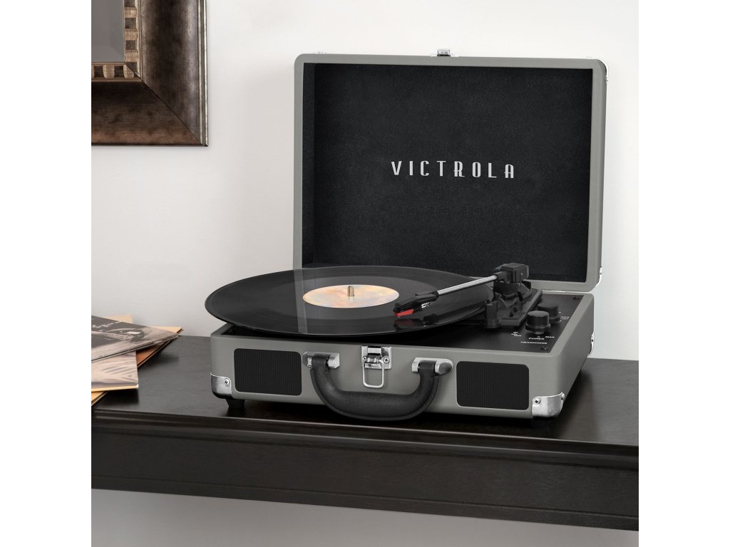 Chcete si vychutnat hudbu v soukromí? Victrola Journey+ má vestavěný sluchátkový jack, takže si můžete pustit své oblíbené desky, aniž byste rušili ostatní. A díky lehkému kufříkovému designu s rukojetí si gramofon snadno přenesete kamkoliv – z obýváku na terasu, z ložnice na zahradu.