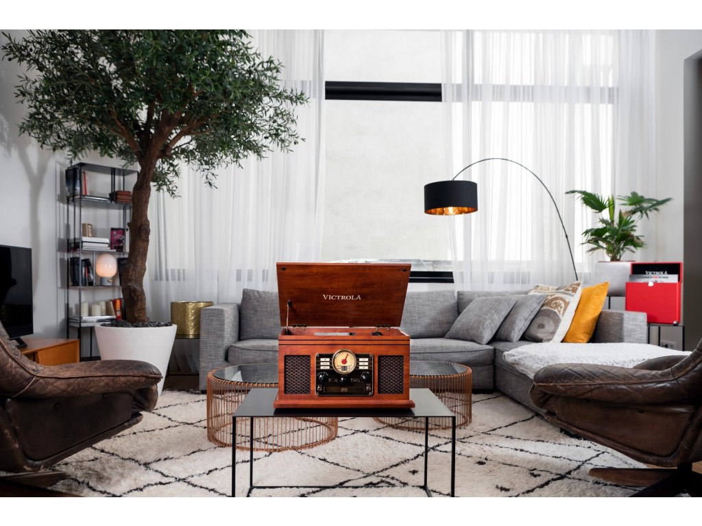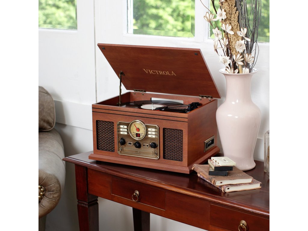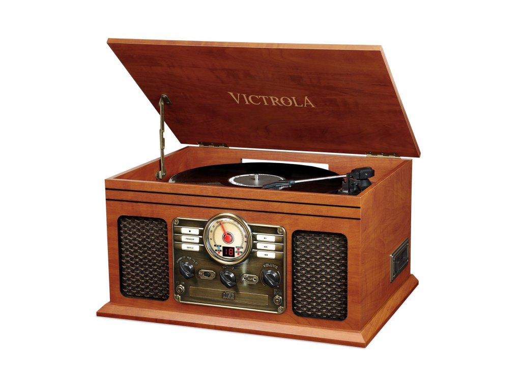 Gramofon Victrola VTA-200B spojuje všechny moderní technologie s luxusním retro designem. Streamujte hudbu nebo přehrávejte své oblíbené CD, kazety, vinylové desky nebo rozhlasové stanice. Pro bezdrátové připojení vašeho mobilního zařízení použijte vestavěného Bluetooth přijímače s dosahem až 10 metrů. Součásti gramofonu je i FM rádio s nádherným retro analogovým tunerem. Pomocí 3,5mm jacku přehrávejte hudbu ze zařízení bez podpory Bluetooth.