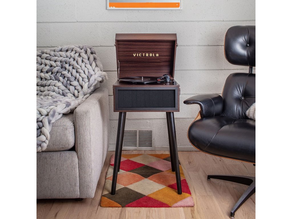 Victrola Liberty je také designový kousek, který dodá vašemu interiéru šmrnc. Díky odnímatelným nohám si můžete vybrat, zda jej budete používat jako volně stojící gramofon, nebo jej umístíte na stůl či polici. Jeho elegantní dřevěné provedení s vintage nádechem z něj dělá perfektní doplněk do každého prostoru.
