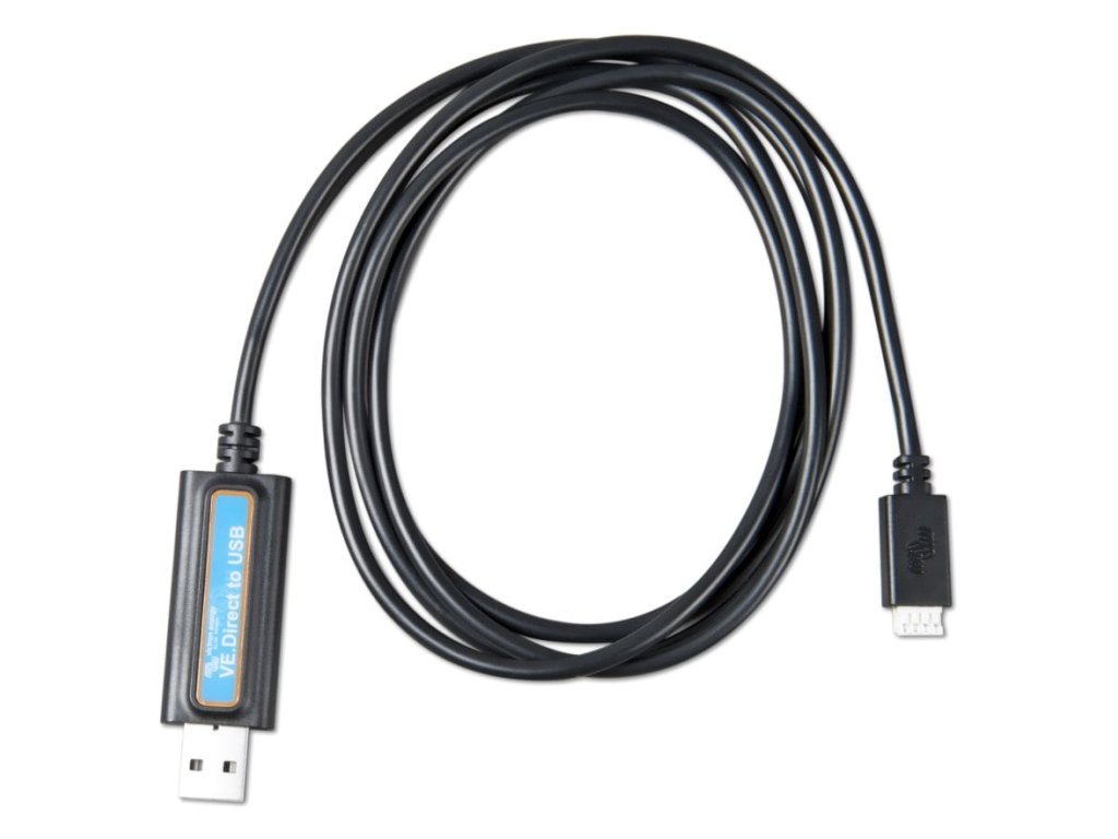 Rozhraní VE.Direct-USB slouží k propojení počítače s Victron zařízeními s VE.Direct komunikačním protokolem. Jedná se zejména o solární MPPT regulátory BlueSolar 75/15, 100/15 a 75/50 a sledovač stavu baterií BMV700, BMV702 a BMV700H.