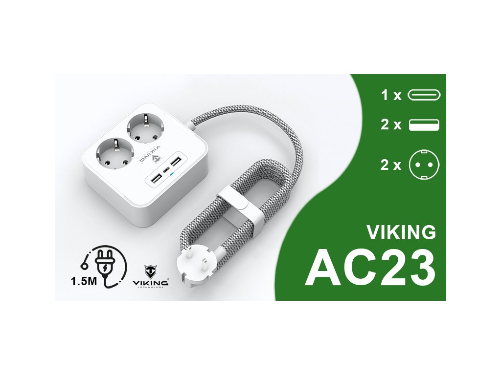 Představujeme spolehlivý rozbočovač Viking AC23, který překoná vaše očekávání. S dvěma AC výstupy o výkonu 250V/16A (max. 4000W), dvěma rychlými USB-A výstupy (5V/2.4A) a jedním rychlým USB-C výstupem (5V/3A) přinášíme do vašeho života maximální efektivitu a pohodlí.