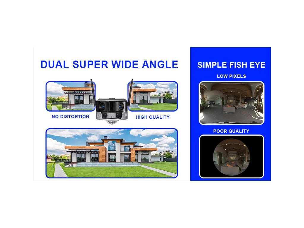 Ultra širokoúhlé monitorování se dvěma objektivy 180°.
