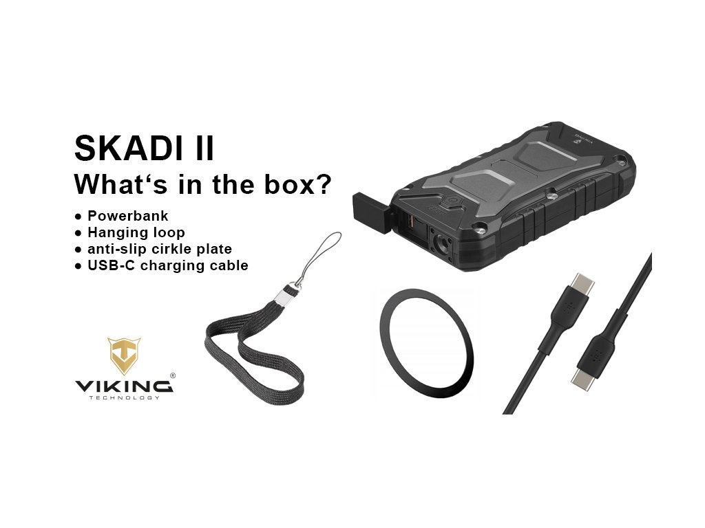 S naší outdoorovou powerbankou Viking SKADI II můžete být vždy připraveni na všechny výzvy, které vám příroda může přinést. Nezáleží na tom, jak náročné jsou podmínky, tato powerbanka vám poskytne potřebnou energii a spolehlivost, kterou potřebujete, abyste mohli být napojení na svět, kdekoliv se nacházíte.