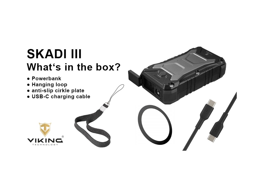 Outdoorová powerbanka Viking SKADI III je vyrobena z odolného materiálu (ABS+PC), který snese náročné podmínky v přírodě. Voděodolné (IP66) a nárazuvzdorné (SHOCKPROOF) provedení znamená, že ji můžete bezpečně používat při turistice, kempování, horolezectví nebo jiných aktivitách. Navíc vám outdoorová powerbanka Viking SKADI III nabídne dostatek energie pro vaše nejpotřebnější zařízení, jako jsou například GPS navigace, kapesní lampy, nebo nabití vašeho smartphonu v nouzi.