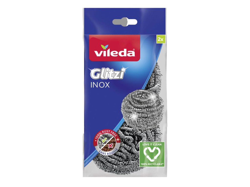Zvolte sílu, odolnost a efektivitu. Zvolte Vileda 141656 Drátěnku Glitzi PowerInox pro váš dokonalý úklid.