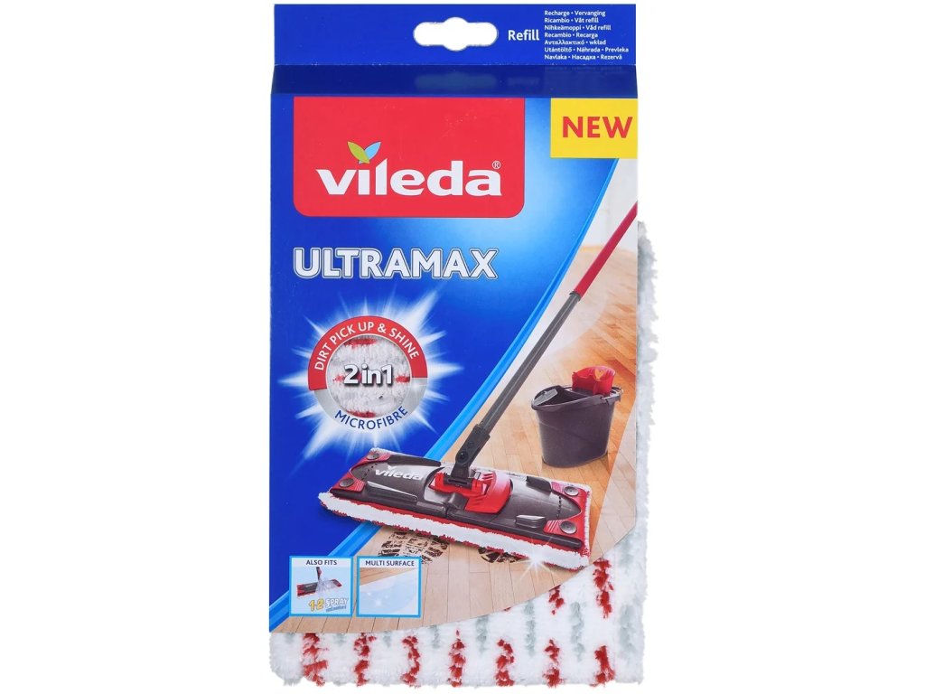 Mop Ultramax vám úklid domácnosti velmi urychlí. Pravidelným používáním však dochází k postupnému opotřebování návleku z mikrovlákna, který je potřeba pravidelně obměňovat, aby vám prach a další nečistoty na zemi nezůstávaly. Společnost Vileda proto vytvořila náhradní potah, který můžete na mopu vyměnit. Je vytvořen ze dvou druhů mikrovláken. Mikroaktivní eliminují mastnotu a šmouhy, zatímco abrazivní vlákna si hravě poradí i se zaschlými nečistotami. Utěrka je vhodná pro všechny typy tvrdých podlah a v případě potřeby ji můžete prát v pračce bez aviváže na 60°.