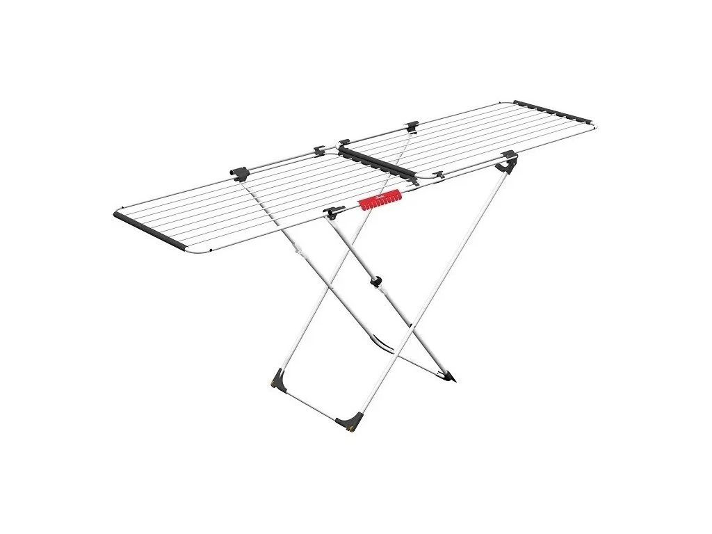 Zavěšení prádla na sušák je pohodlné díky silným hliníkovým drátům, které zabrání mačkání prádla.
