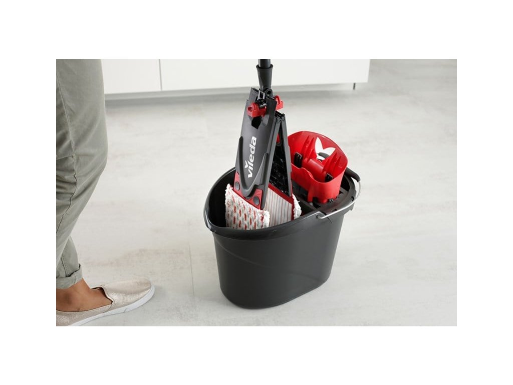 Úklidový set VILEDA Ultramax XL set Box je skvělým pomocníkem v domácnosti pro pohodlné čištění podlahových ploch. Obsahuje plochý mop Ultramax XL a kýbl se ždímacím košem. Ultramax mop XL je vybaven o 20 % delší hlavicí. Díky power zóně působí až desetkrát větším tlakem oproti běžnému plochému mopu, čímž odstraňuje nečistoty mnohem snadněji. Jeho předností jsou dva druhy vláken zaručující perfektní výsledek. Zatímco mikroaktivní vlákna pohlcují a stírají mastnotu a šmouhy, abrazivní vlákna si hravě poradí i se zaschlou špínou. Mycí návlek lze snadno sundat a vyprat v pračce na 60 °C bez použití aviváže a sušičky. Mop Ultramax XL? je vhodný na všechny druhy tvrdých podlah, jako jsou plovoucí podlahy, parkety, PVC a dlažba.