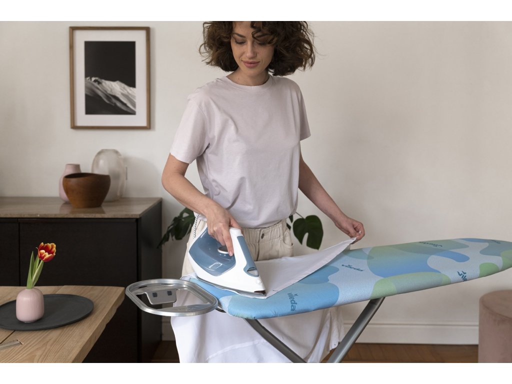 Žehlete efektivněji s potahem na žehlicí prkno Vileda Premium 2v1. Je totiž vybaven metalickým povrchem, který skvěle odráží teplo. Oblečení a textil tak budou snáze a rychleji dokonale hladké. Potah má univerzální rozměry, je tedy vhodný na většinu běžných žehlicích prken. Navíc je z elastického materiálu a disponuje klipem pro rychlé a přesné uchycení. Potah na žehlící prkno VILEDA Premium 2v1 v šedé barvě s potiskem bílých a lososových motýlů oceníte při žehlení i těch nejmenších kousků oblečení.