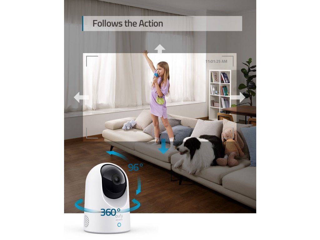 Eufy Indoor Cam 2K Pan & Tilt White je vnitřní kamera s 2K rozlišením (2048×1080).