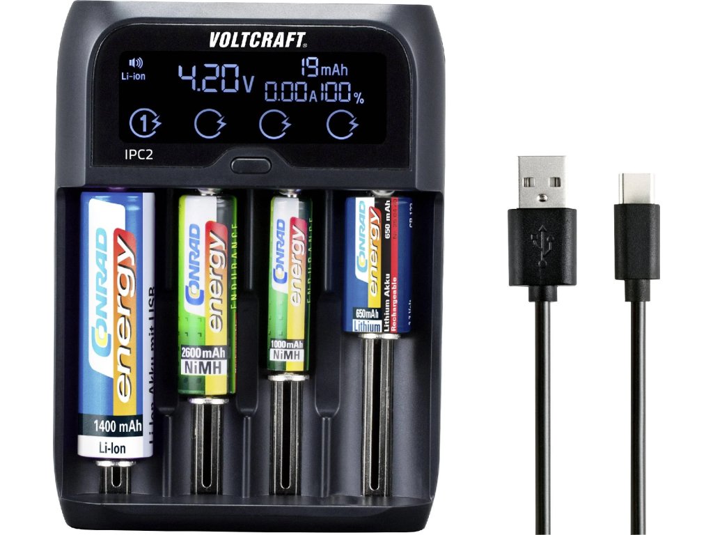 VOLTCRAFT IPC-2 nabíječka akumulátorů NiMH, NiCd, Li-Ion, LiFePO Mini (AAAA), AAA, AA, malé mono, Sub-C, A, 10440, 14500, 14650, 16340, 17355, 17500, 17650, 17670, 18350, 18500, 18650, 20650, 22650, 26500, 26650