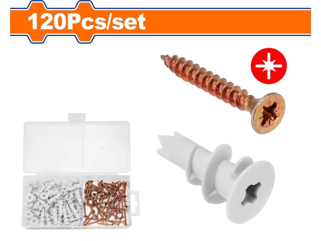 Wadfow Hmoždinka s vrutem do dřevotřísky sada 120ks