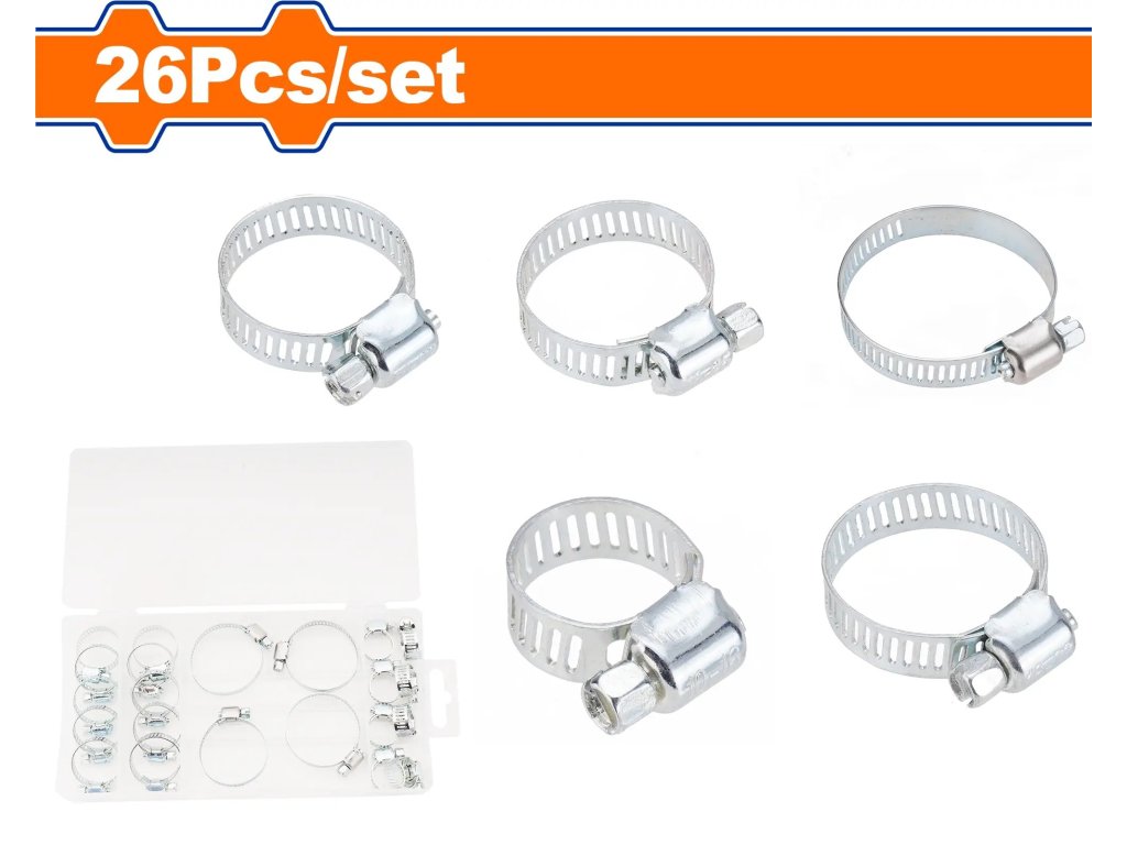 Sada obsahuje různé velikosti hadicových spon vhodných pro upevnění hadic a trubek.