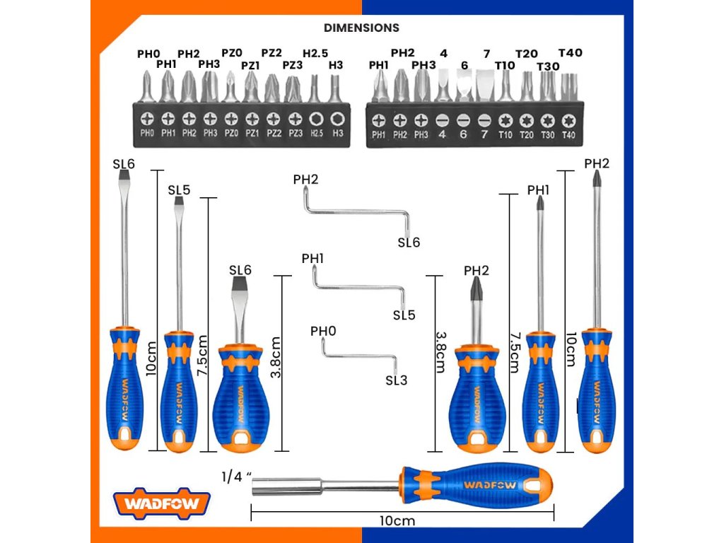 Sada 45 ks šroubováků s rukojetí ve tvaru T