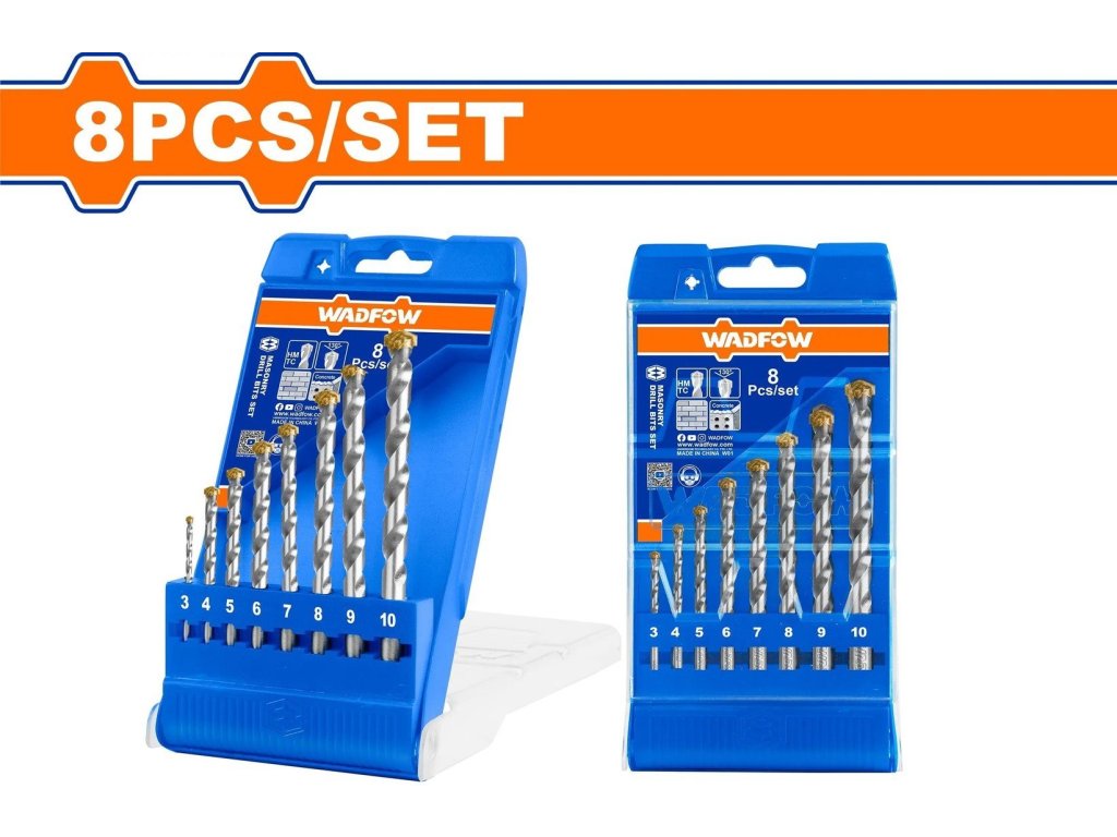 8ks Sada vrtáků do zdiva; Velikost: 3x60, 4x75, 5x85, 6x100, 7x100, 8x120, 9x120, 10x120 mm