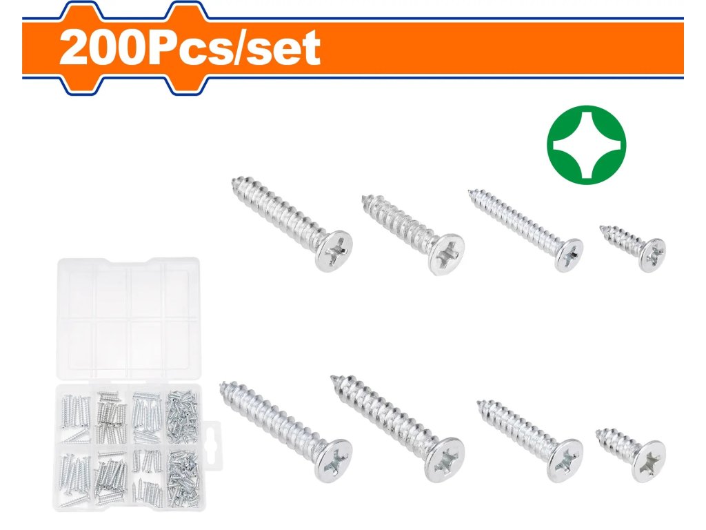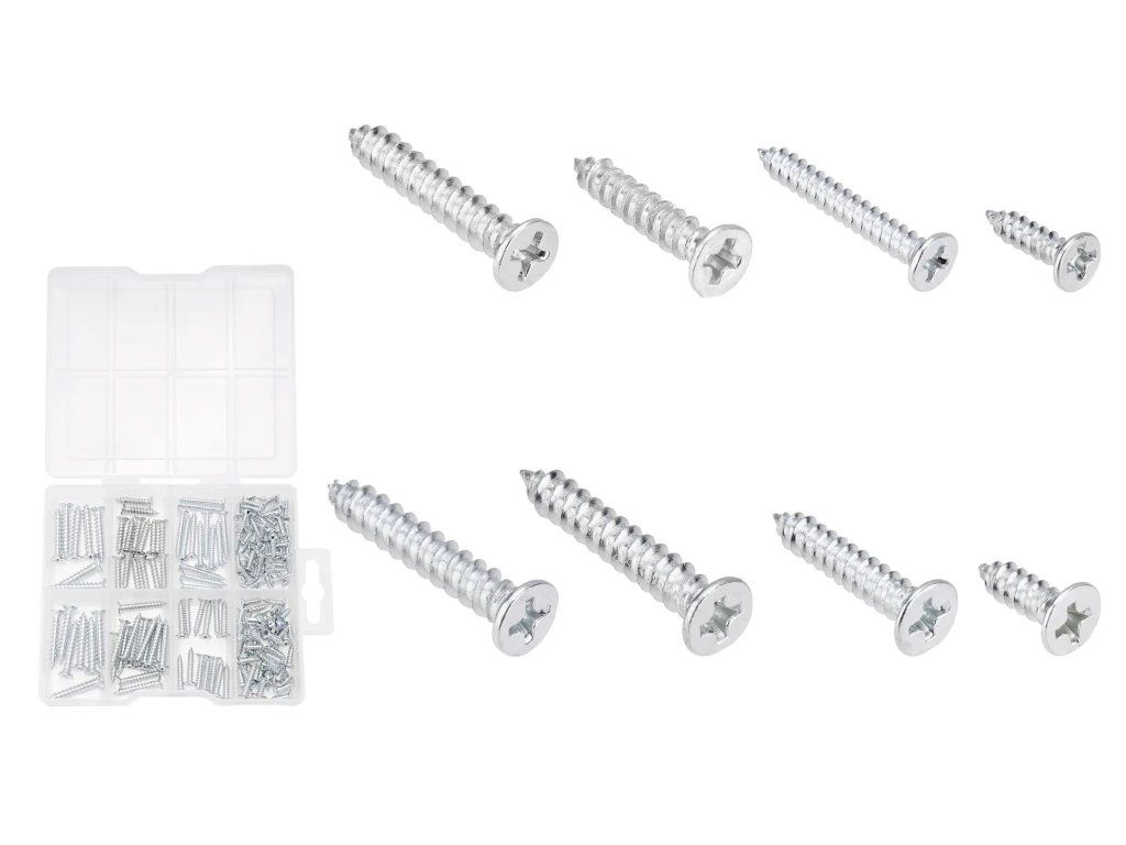 Sada obsahuje 200 ks samořezných šroubů se zápustnou hlavou, ideálních pro pevné a čisté spojení materiálů.