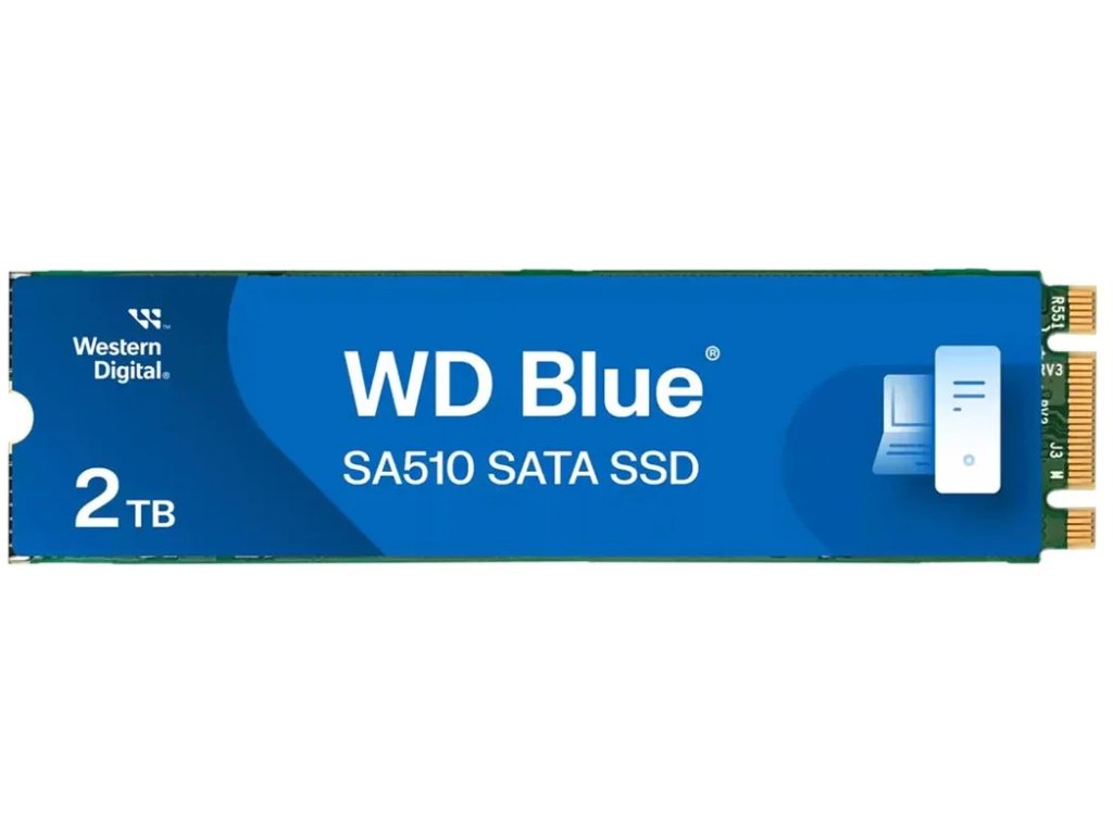 WD Blue SA510 SATA SSD v M.2 provedení pro zvýšenou kompatibilitu a hodí se do mnoha počítačů.