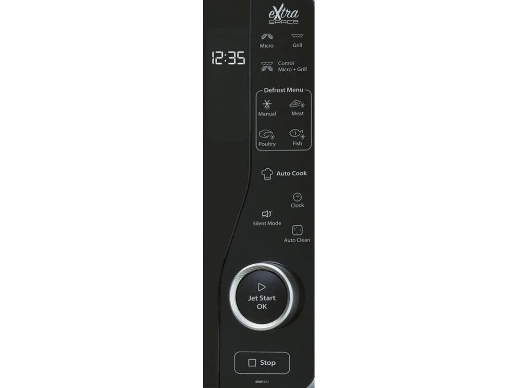 Elektronické dotykové ovládaní + otočný knoflík, funkce JetStart, Defrost, Gril, kombinace mikrovln a grilu, AUTO Cook - možnost použití automatických receptů