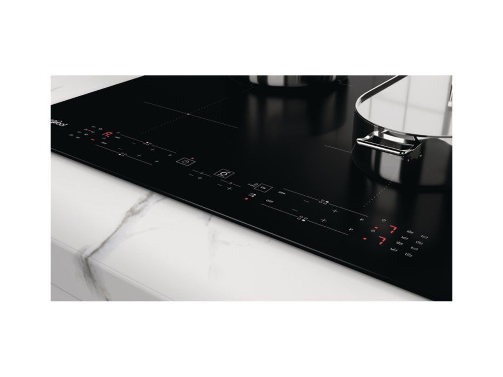 Indukční vestavná varná deska 59 cm • 4 varné zóny • připojení 220–240 V / 400 V • dotykové ovládání • funkce 6. SMYSL – uvedení do varu, dušení, udržování v teple a rozpouštění • funkce PowerBoost