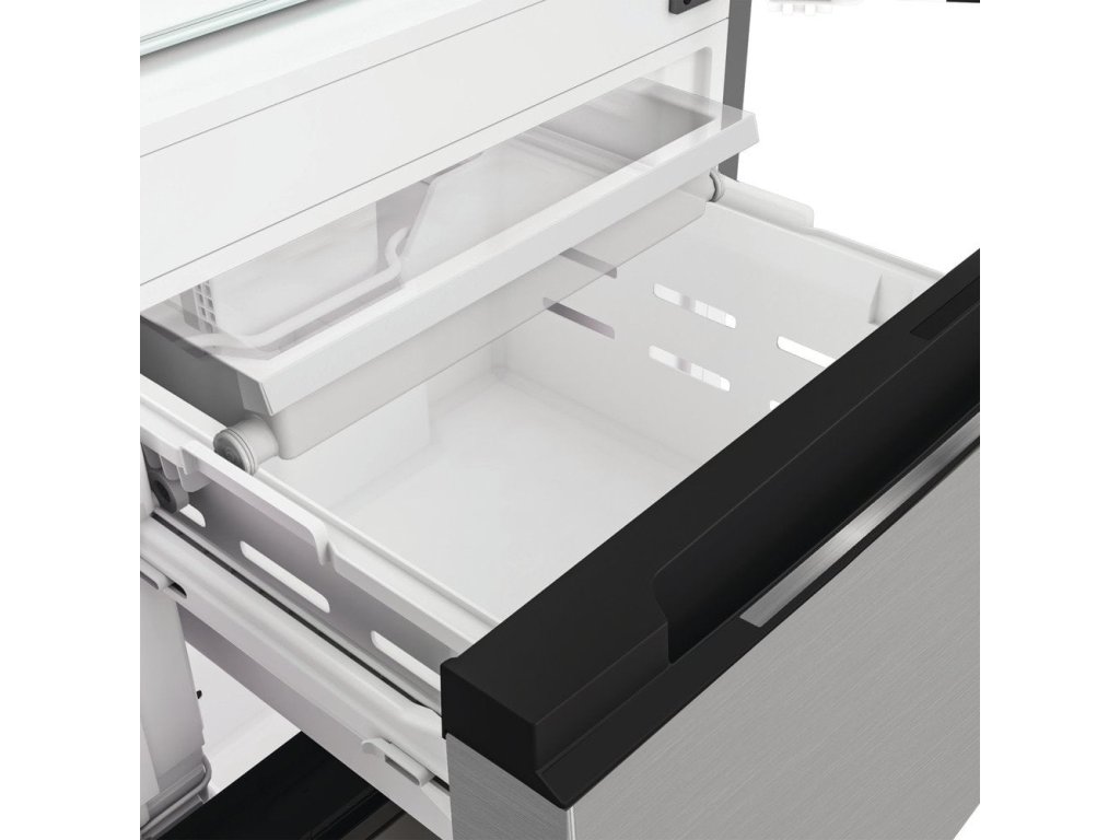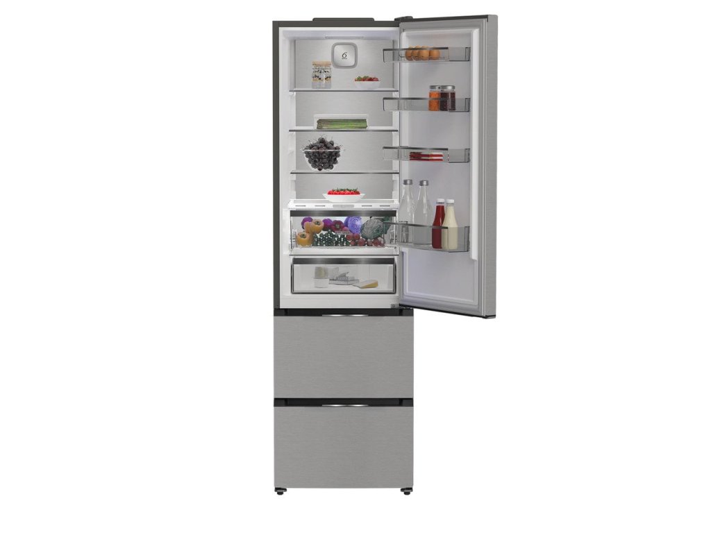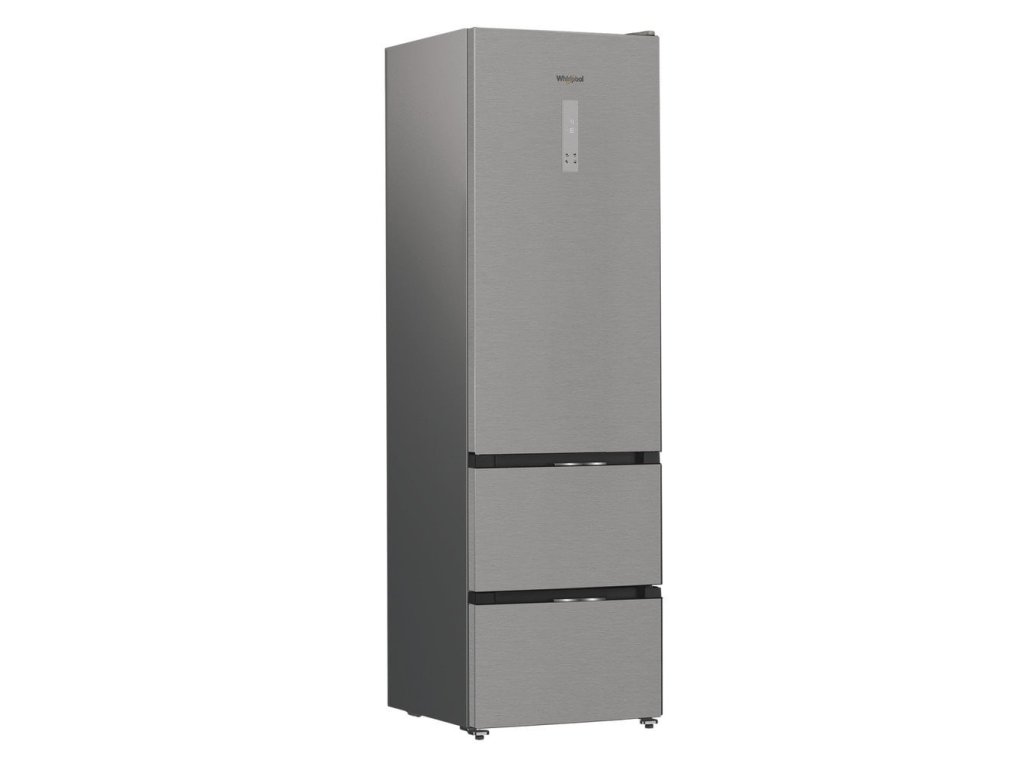 Beznámrazová chladnička s mrazákem Whirlpool WHKF 6352 X5E o impozantní výšce 203 cm a celkovém objemu 351 litrů nabízí zajímavě řešený přístup k mrazicí části. Chladicí část má objem 249 litrů a mraznička 102 litrů, takže poskytuje dostatek místa i pro větší domácnosti. Spotřebič je zařazen do energetické třídy D a díky moderním technologiím zajišťuje dlouhodobě čerstvé potraviny i nízkou spotřebu. Moderní kombinovaná chladnička s mrazničkou je vybavena technologií Dual Cooling, která zabraňuje tvorbě námrazy a ledu jak v mrazáku, tak i ledničce. Chladnička je vybavena inteligentní technologií 6. SMYSL Ultimate Freshness, která automaticky reaguje na změny teploty a udržuje ideální podmínky. Technologie FreshLock a ProFresh minimalizují teplotní výkyvy a udržují v chladničce ideální vlhkost. Výsledkem je delší trvanlivost, více chuti a zachování živin. Už se nemusíte obávat mísení chutí a vůní rozmanitých potravin a díky technologii ProFresh se můžete těšit z jejich dlouhodobé čerstvosti. Chladnička je vybavena kovovou zadní stěnou, která podporuje rovnoměrnou cirkulaci chladného vzduchu a rychlé obnovení teploty po otevření dveří. Výsledkem je efektivnější chlazení, menší energetické ztráty a delší čerstvost potravin. Díky konstrukci dveří SmoothFit a celkovému provedení PerfectFit lze chladničku umístit i do užších prostor, přičemž dveře nevyčnívají a neomezují pohodlné otevírání. Spotřebič potěší i tichým provozem s hlučností pouhých 35 dB a jistotu spolehlivosti podtrhuje 10letá záruka na kompresor.