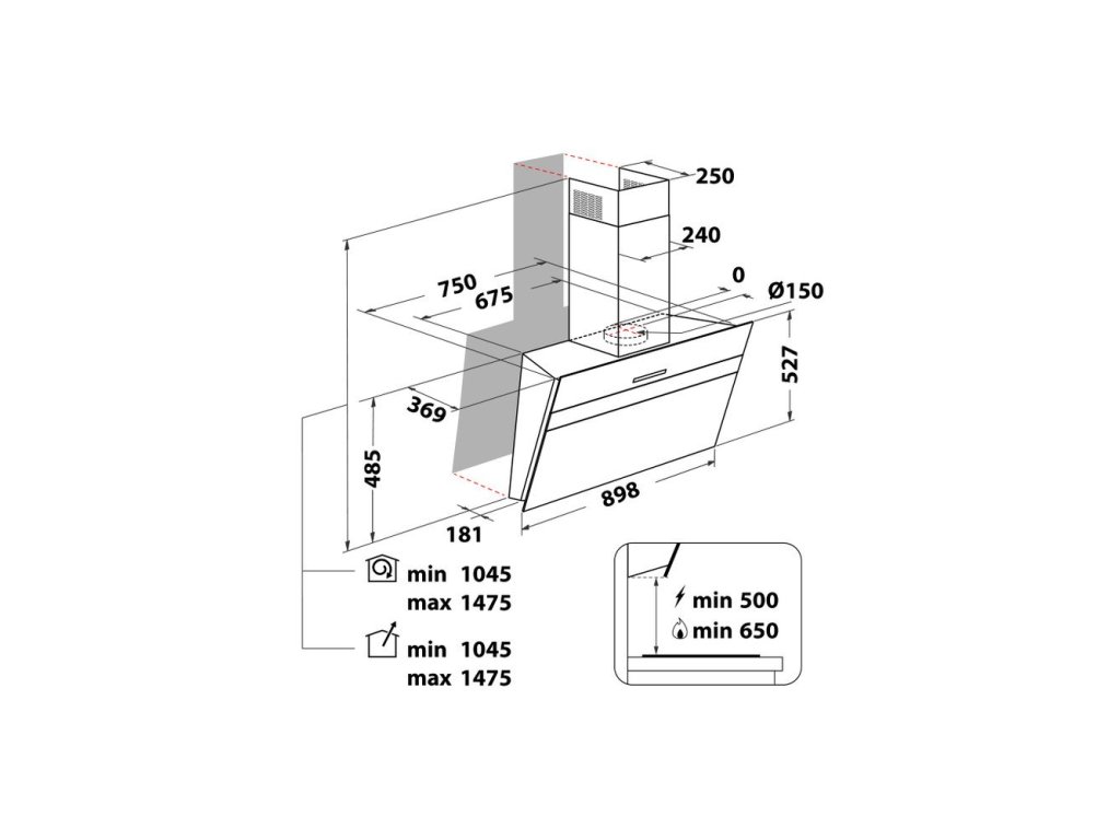 Dekorativní nástěnný odsavač par WHVS 90F LT C K v černém provedení a šířkou 90 cm