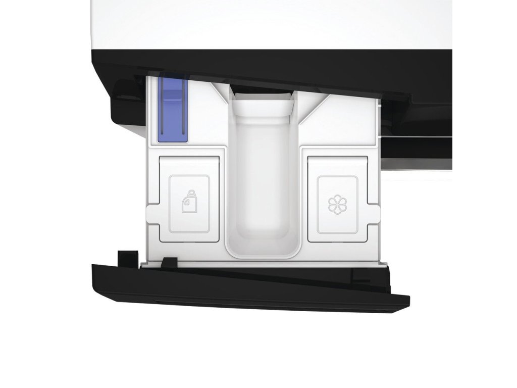 Volně stojící předem plněná pračka se sušičkou, kapacita 10/7 kg, barva bílá s černými dvírky a penelem, energetická třída A/D, otáčky 1400 ot./min., invertorový motor, technologie 6. smysl a Steam Refresh, šířka 60 cm, hloubka 60 cm.