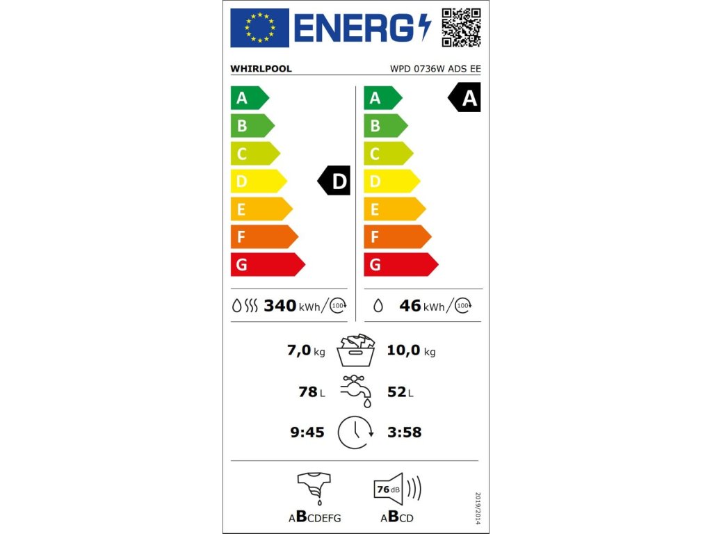 Energetická třída pro sušení a praní: D