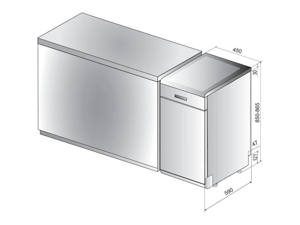 Udávané rozměry spotřebiče jsou uvedeny na základě informací výrobce, nejsou do nich započítány přesahy jednotlivých částí spotřebiče (např. ovládací panel, dvířka, apod.).