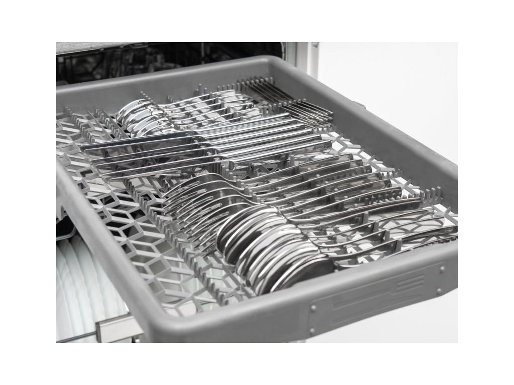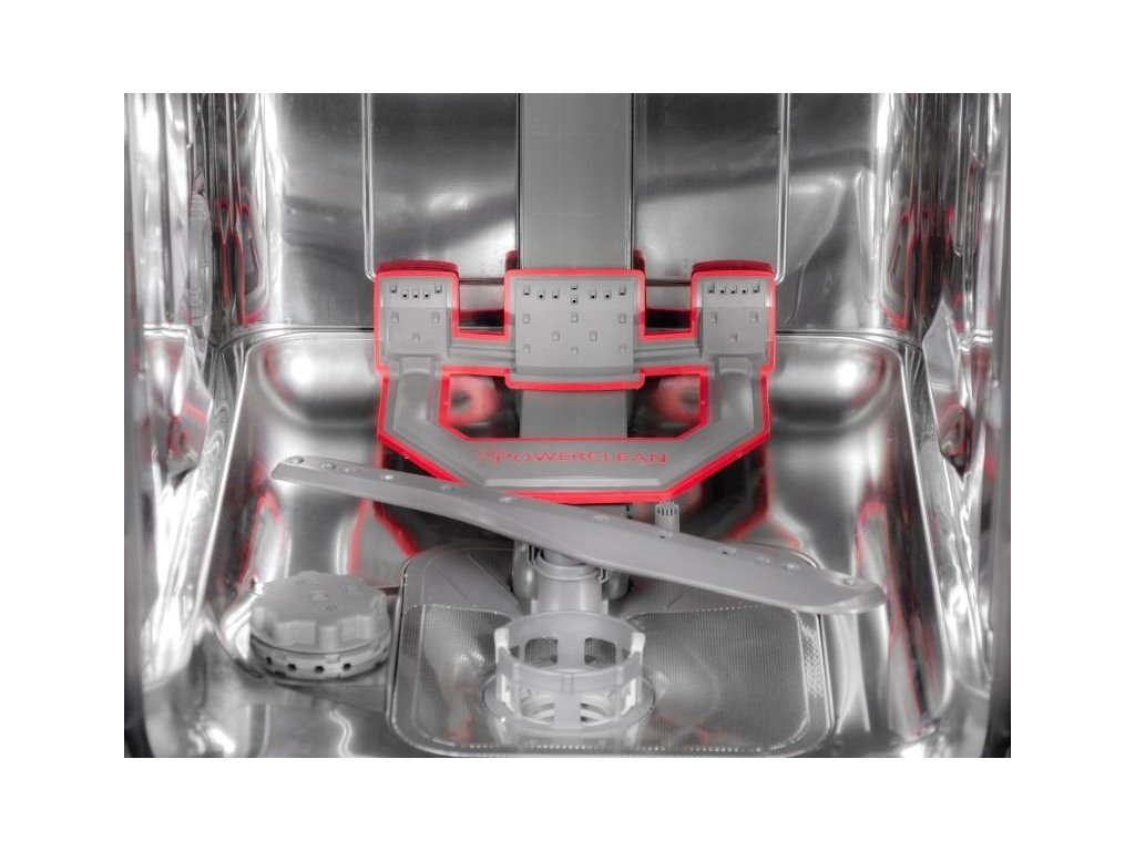 Užijte si více volného času díky myčce. Košové vybavení této plně integrované myčky sestává z horního koše, který je výškově nastavitelný, dolního koše a příborové zásuvky. Horní koš je idaálny pro ukládání, sklenic, šálků nebo menších kusů nádobí. Vínové poháry umožuje uložit bezpečně do sklápěcích klapek, uchycením stopky do příslušné štěrbiny. Dolní koš je vhodný pro ukládání hrnců, pokliček, talířů nebo salátových mís. Je vybaven oporami proti převrácení, které jsou sklopné. V dolním koši se nachází také Power Clean, který používá speciální trysky v zadní části dutiny pro intenzivnější mytí. Třetím košem je příborová zásuvka. Je vybavena i dvěma bočními posuvnými koši. Nabízí extra místo pro optimální ukládání nádobí.