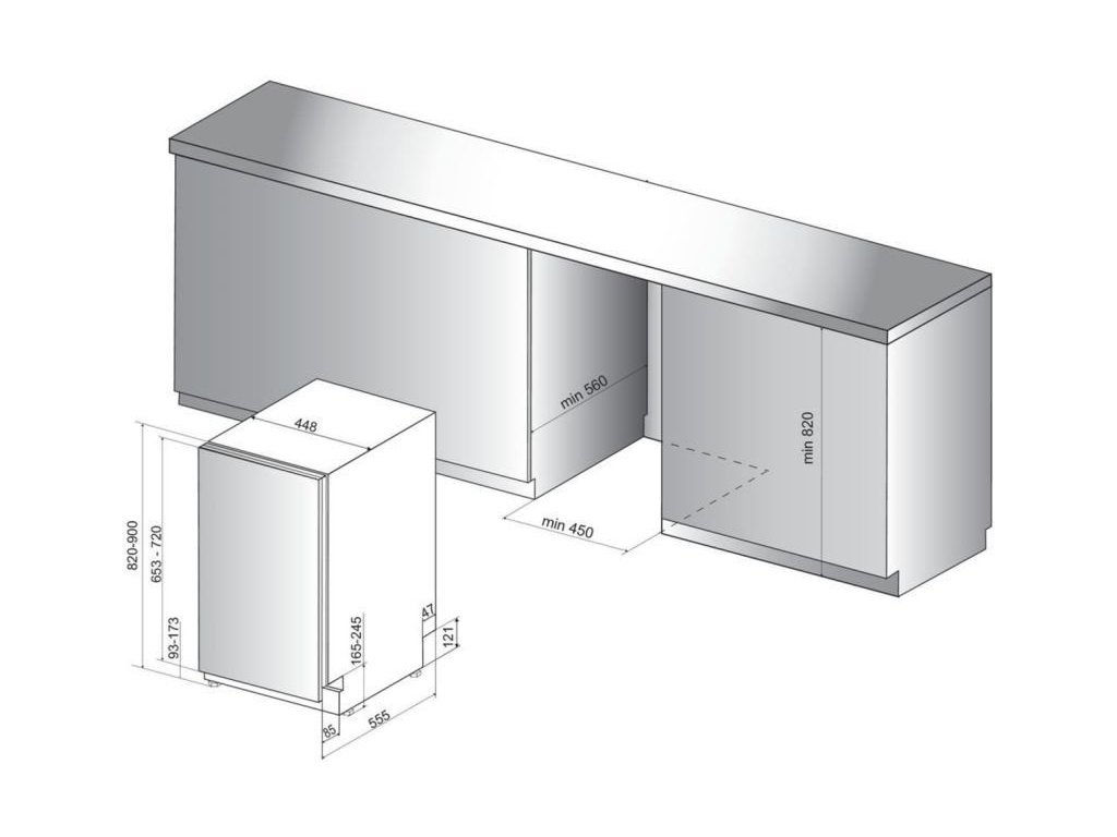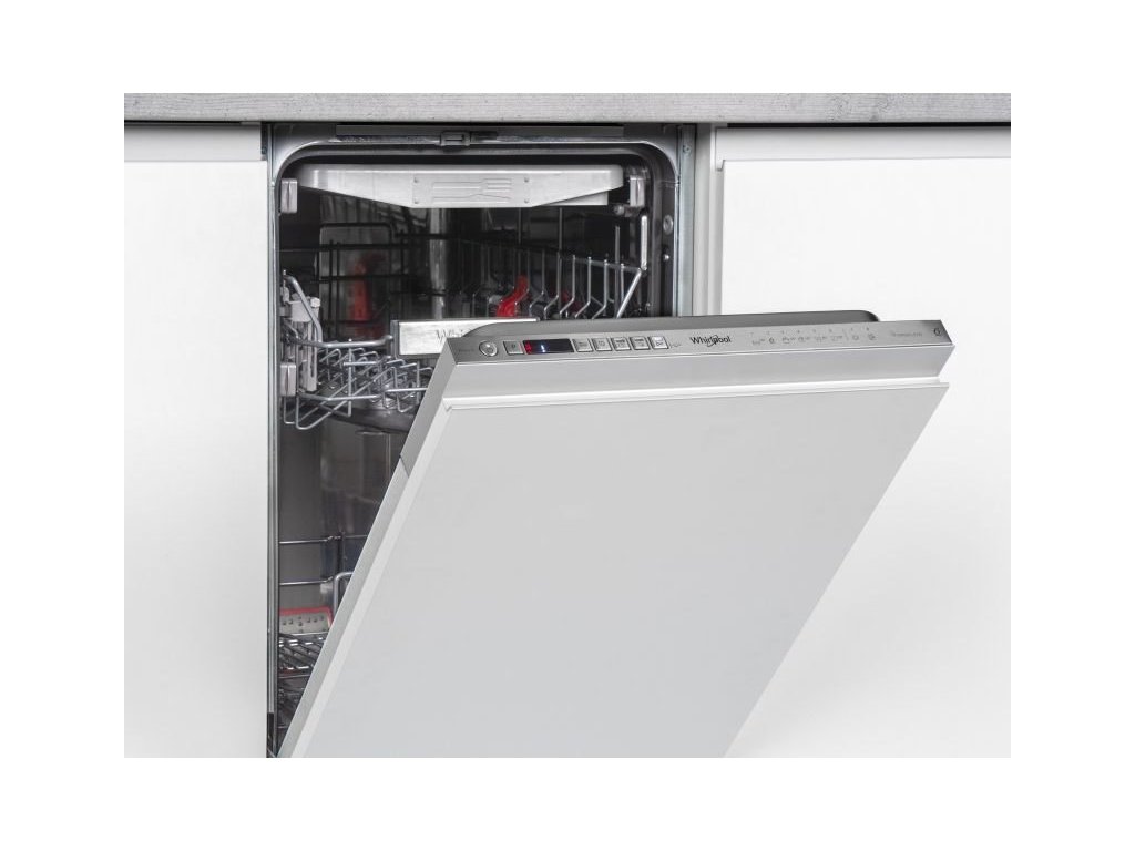 Vestavná myčka nádobí, šířka 45cm, energetická třída D, kapacita sad nádobí: 10, spotřeba energie 67 kWh na 100 cyklů, maximální hlučnost 44 dB, spotřeba vody 9 l, 7 mycích programů, technologie 6. smysl.