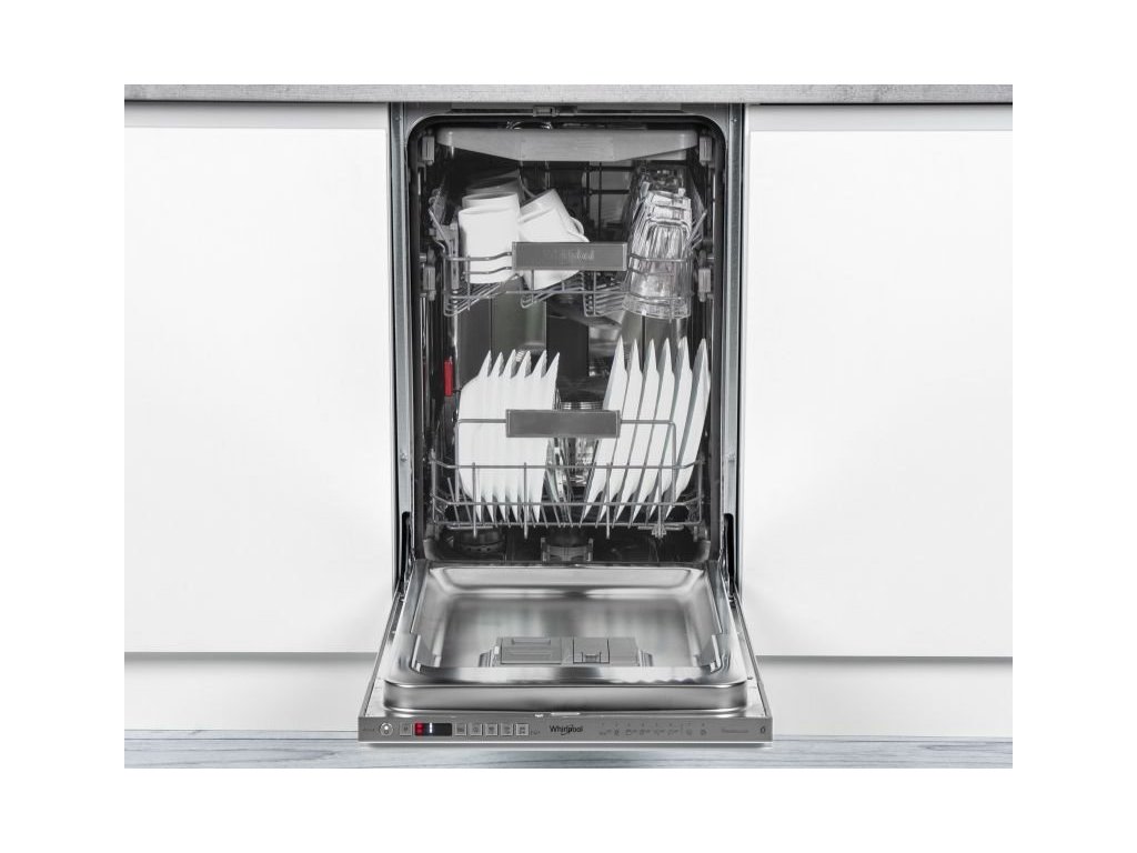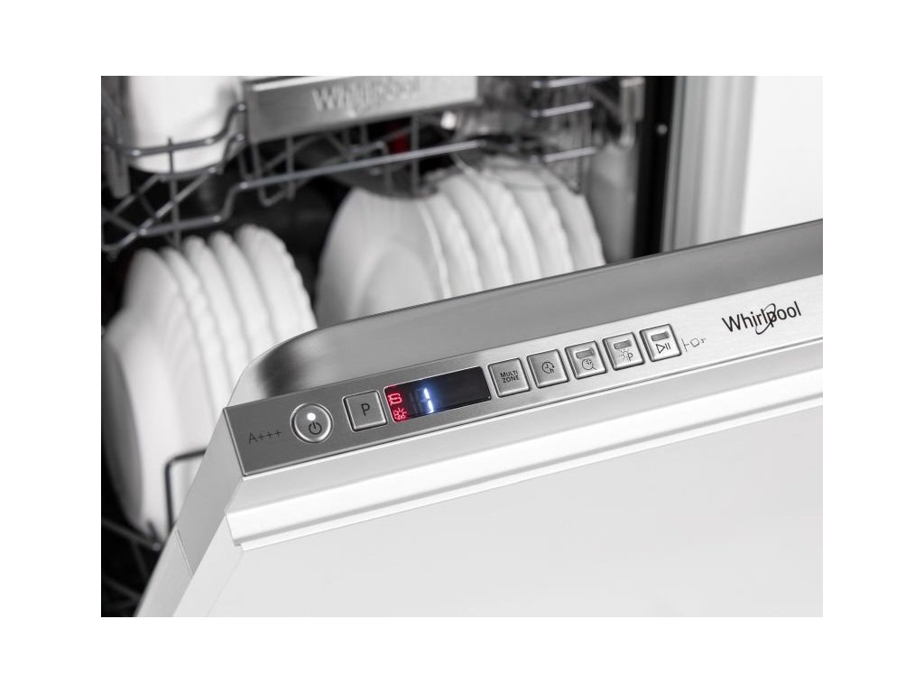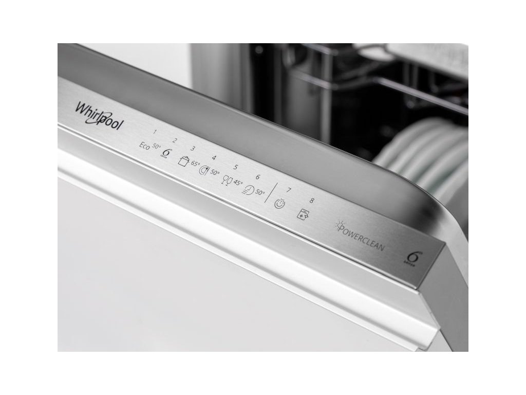 Vestavná myčka nádobí Whirlpool WSBO 3O24 PFE X se senzorovou technologií 6. smysl. Senzory automaticky měří stupeň znečištění vody a přizpůsobují podle toho parametry mycího programu tak, aby byla spotřeba vody, energie a času co nejoptimálnější. Pomocí této unikátní technologie ušetříte nejen čas, ale i váš rodinný rozpočet. V úsporné energetické třídě A+++ s šířkou 45 cm na jeden mycí cyklus dokáže umýt 10 jídelních souprav nádobí při nízké spotřebě vody, která je pouze 9 l / cyklus. Disponuje elektronickým indikátorem soli, který vás svým rozsvícením upozorní na potřebu doplnění soli. Doplnění leštidla vám zase pomocí rozsvícení připomene indikátor leštidla. Samovyvažovací dveře myčky zůstanou stát v každé poloze a samovolně se nezavřou. Po ukončení hlavní fáze sušení se díky funkci NaturalDry System dvířka automaticky otevřou pro rychlé dosušení přirozenou cirkulací vzduchu. Určitě oceníte i praktický světelný indikátor činnosti. Samozřejmostí jsou nastavitelné nožičky.