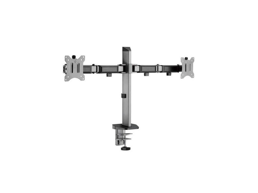 Držák pro 2 monitory, nastavitelná výška, montáž VESA (75x75 mm/100x100 mm), nosnost 9 kg na monitor, pro monitory až 32”