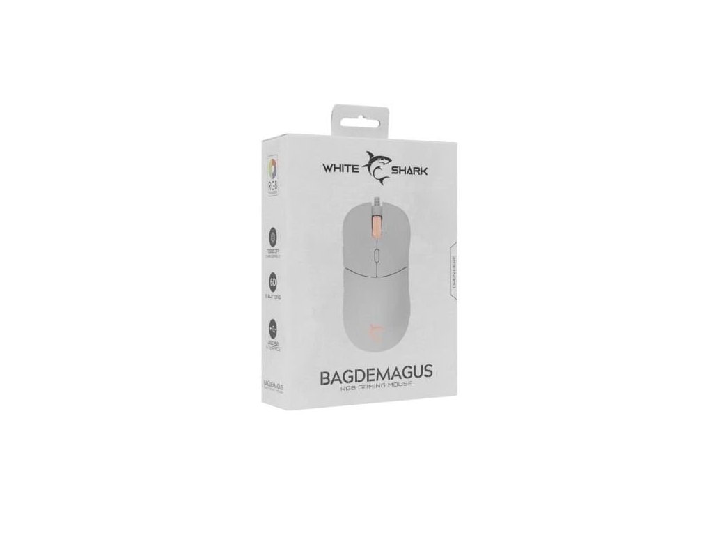 White Shark herní myš BAGDEMAGUS, maximální rozlišení 7200 DPI, frekvence dotazování 1000 Hz, zrychlení 20 G, RGB osvětlení s 16,8 M barvami.