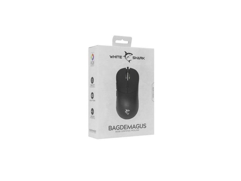 White Shark herní myš BAGDEMAGUS, maximální rozlišení 7200 DPI, frekvence dotazování 1000 Hz, zrychlení 20 G, RGB osvětlení s 16,8 M barvami.